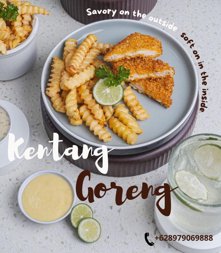 Kentang cemilan yg diolah dgn cara di goreng. Gurih di luar, lembut di dalam. Nikmati kelezatan kentang goreng kami yang renyah di setiap gigitan. Rasakan sensasi gurih yang tak tertandingi dan bisa menemani saat ngopi ringan bersama teman-teman.